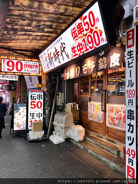 JR天滿站附近的巷弄內,有好多家居酒屋,竟然有中午就開始營業的居酒屋,選定這家新時代,是因為店名跟One Piece Red主題曲一樣,哈哈哈! 是不是很蠢的理由。查了一下這家是發跡於東京新橋的,招牌名物是雞皮串。